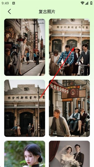 2、在复古照片模板列表页面找到并点击目标模板,即可进入该照片的详细页面。