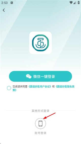 2、在登录选项页面点击账号登录,进入手机号密码登录界面。