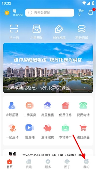 在i青白江首页,点击右下角的“我的”选项,即可进入个人页面。