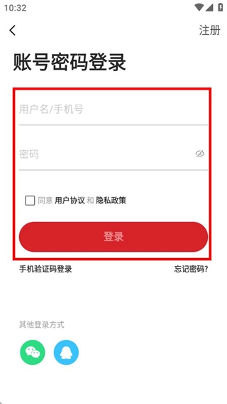 在登录选择页面,点击其他方式登录选项,即可进入账号密码登录页面。