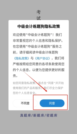 首次使用本应用时,需点击同意相关协议,即可顺利进入应用界面,畅享便捷的写作资源与高效实用的功能。