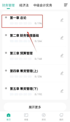 2、在主界面里挑选你需要的章节开展练习,系统会给出相关的习题让你进行作答。