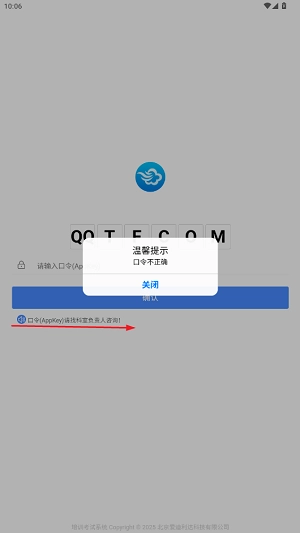 进入爱迪利达医学在线考试系统后,如图输入口令;
