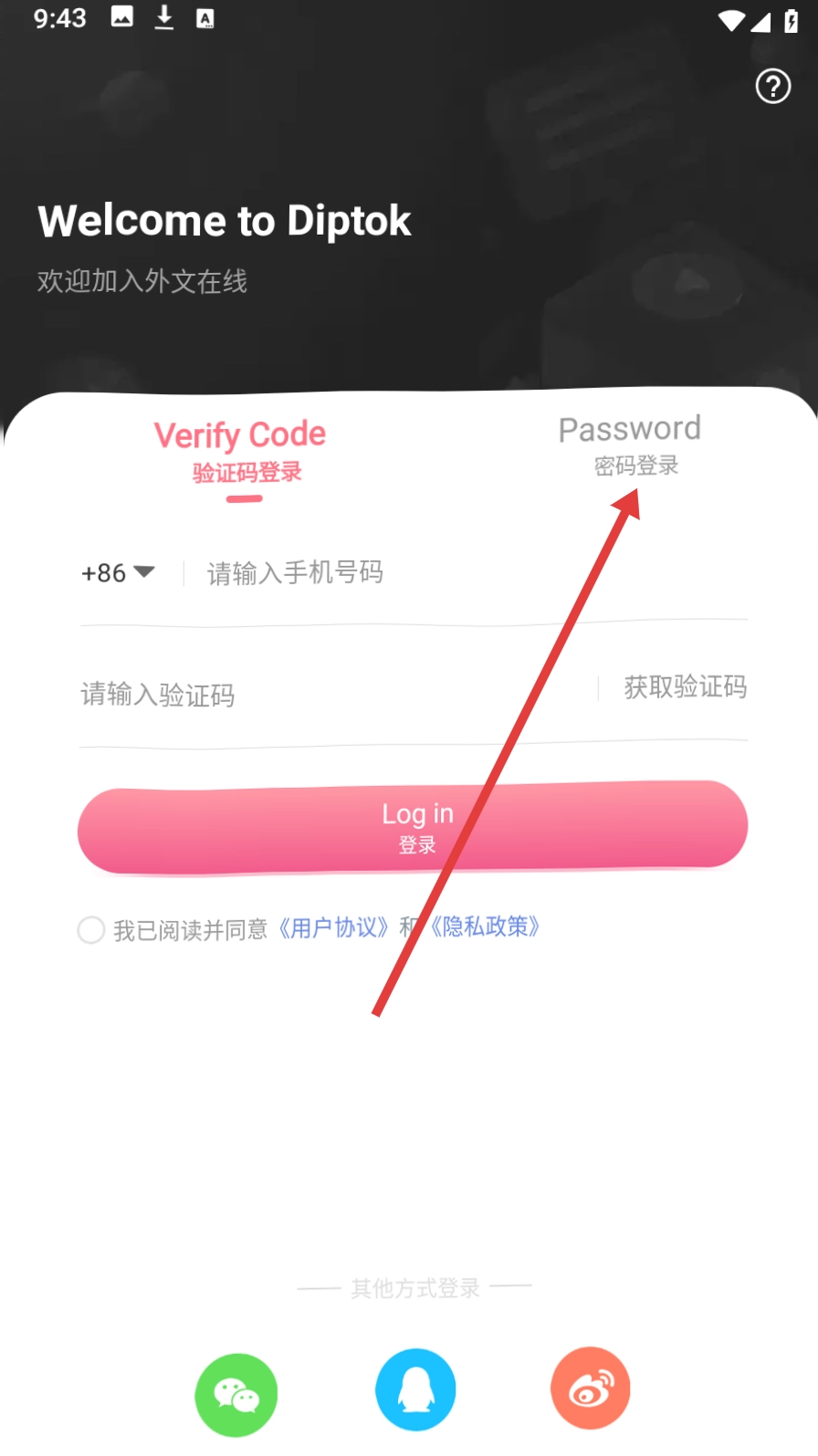 在密码登录页面点击【忘记密码】按钮,即可进入账号验证界面。
