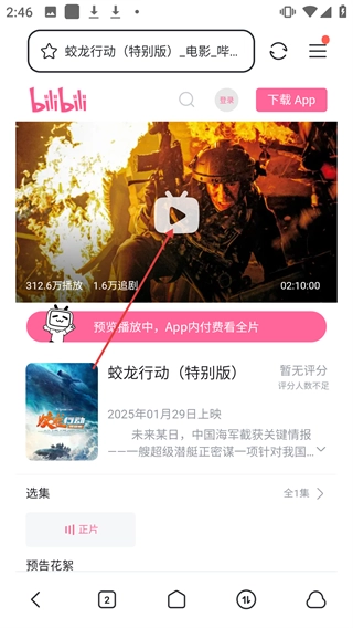 进入B站的播放页面后,只需点击播放按钮,就能观看【蛟龙行动(特别版)】了。