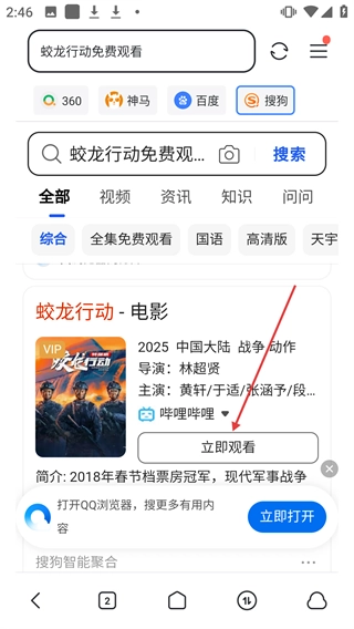 进入蛟龙行动的免费观看页面后,点击【立即观看】按钮。