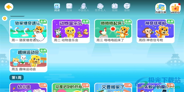 点击国学板块,就能看到免费的小游戏。这些游戏按周一到周五的时间安排,还会标注具体是第几周的内容。