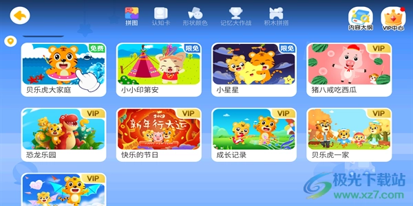 点击这里的益智板块,就能体验各类趣味小游戏,其中以拼图游戏为主,帮助用户提升思维能力。