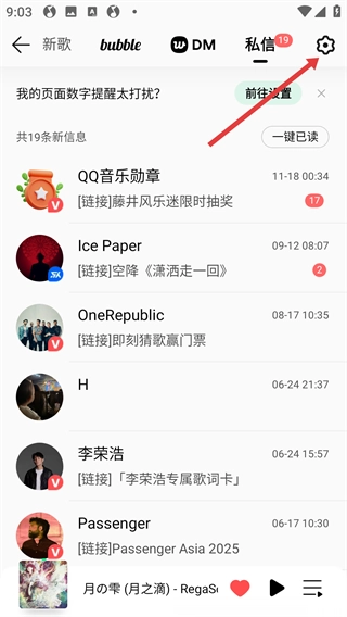 进入【私信】页面后,点击右上角的【设置】图标即可。