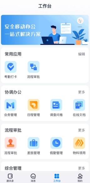 拥有考勤、可自定义的OA审批、邮箱以及云盘等多样化功能,能够充分满足日常办公的各类需求。