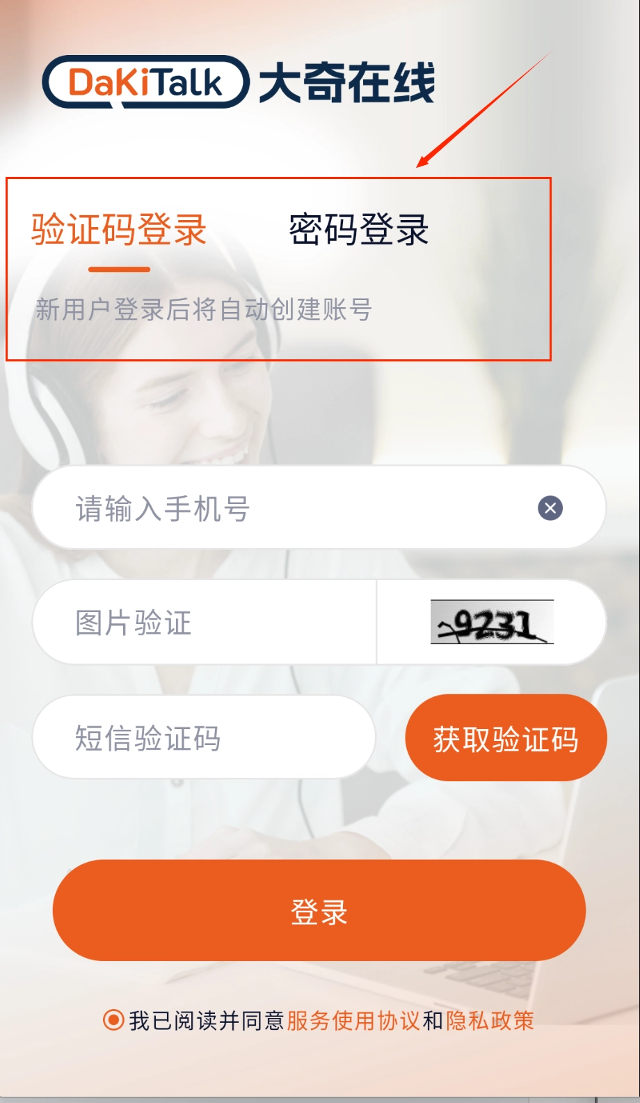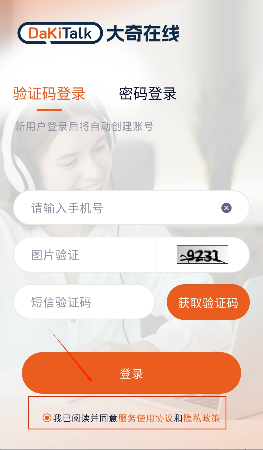 1、打开软件后找到登录页最下方的服务协议和隐私政策链接,记得勾选同意前仔细看看呢。