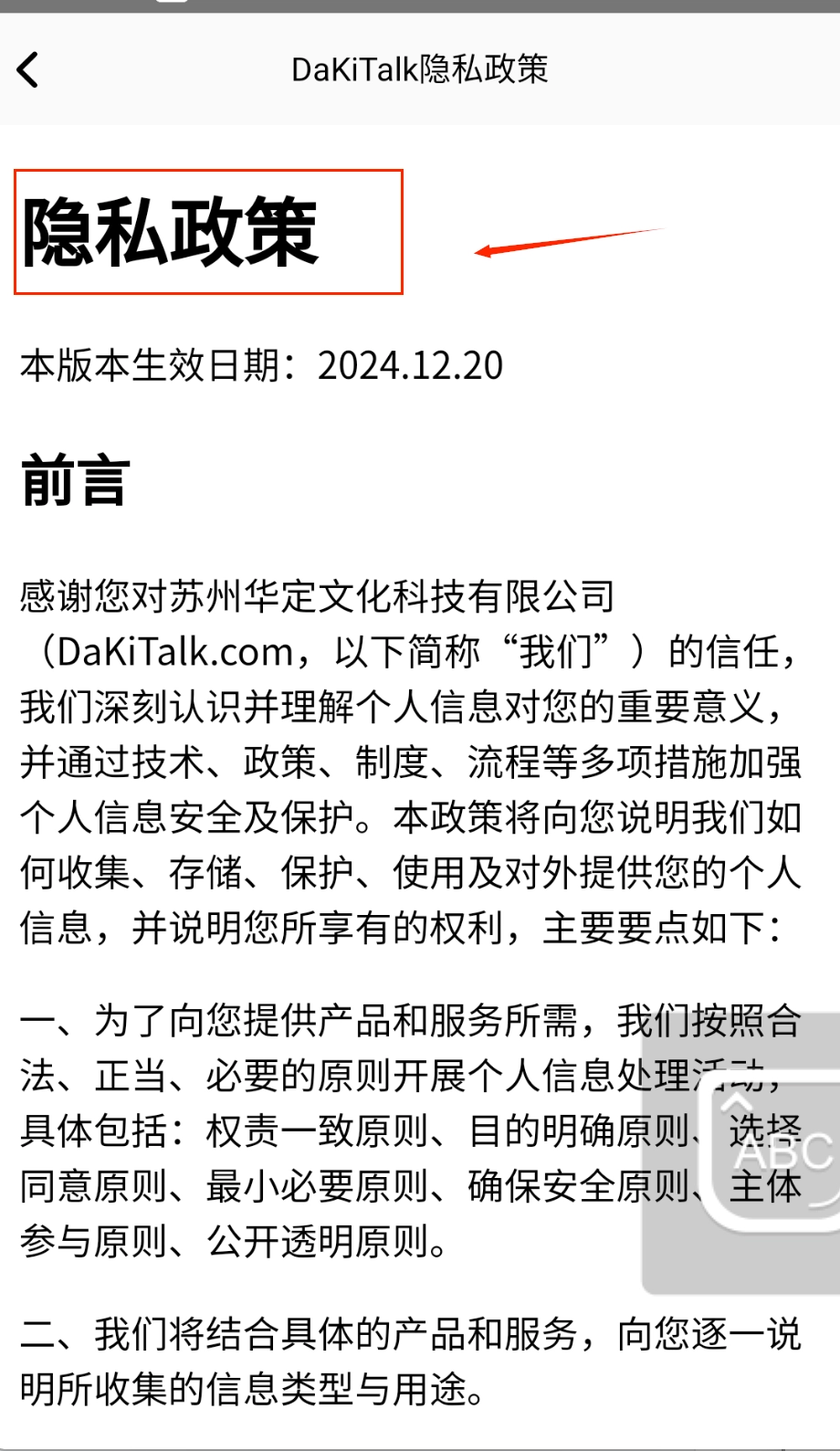 2、在隐私政策页面能看到最新生效日期是2024年12月,里面详细说明了个人信息保护措施。