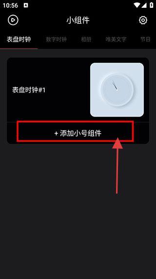 1、打开应用,在【表盘时钟】分类下,点击【+添加小号组件】。