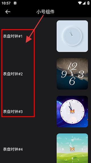 2、在【小号组件】列表中,选择一款喜欢的【表盘时钟】样式,如【表盘时钟#2】。