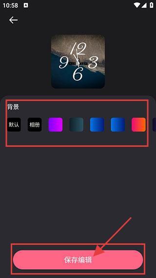 3、进入编辑界面,选择【背景】颜色,如紫色、蓝色等,设置完成后点击【保存编辑】即可。