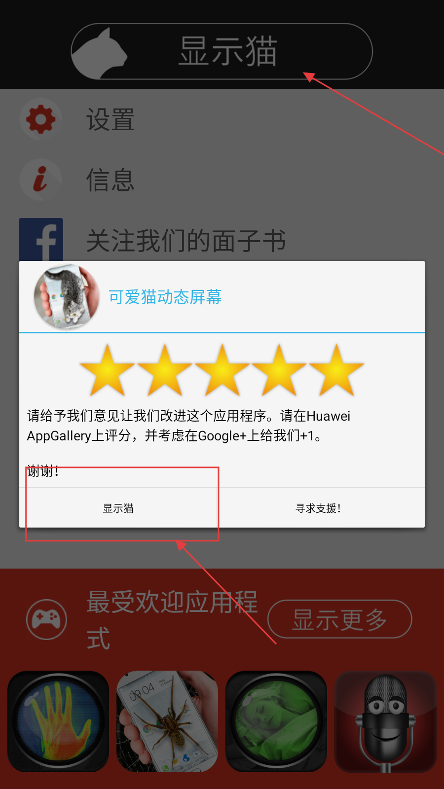 3、设置结束后,点击【显示猫】在弹出的提示窗口中,点击【显示猫】按钮即可。