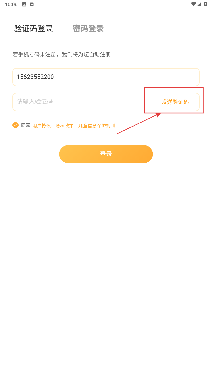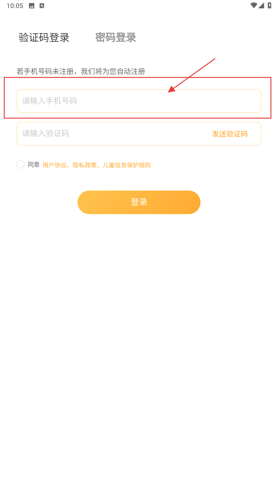 1、打开应用,填写手机号。