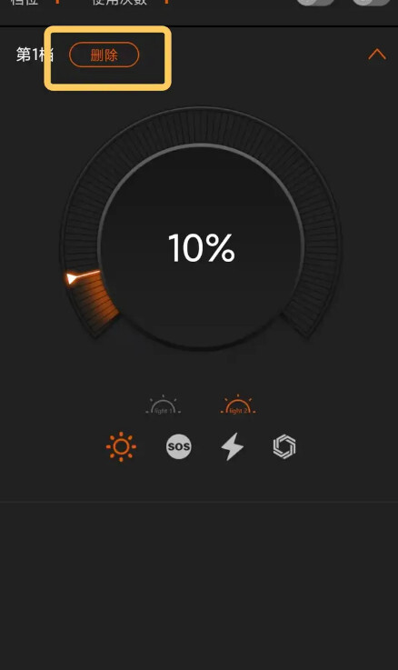 点击添加档位后,会进入亮度调节、灯珠数量调节、模式调节界面,可自定义档位数量,重复添加档位操作即可实现多档位设置。