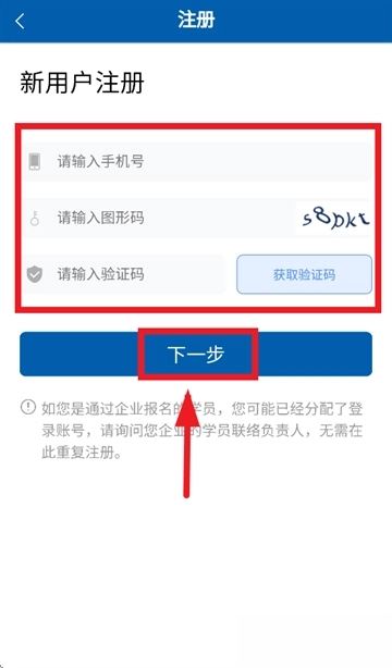 5、填写手机号码、图形验证码与短信验证码后,点击“下一步”按钮即可完成此步骤。