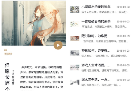 3.每日推荐:每天为用户推送一首精选的古风歌曲,并配以优美的文字介绍,让用户每天都能发现新的音乐惊喜。