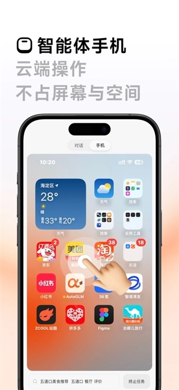 AutoGLM是一款Agent智能体产品,借助远程操控云设备的方式,可自动完成移动端App操作、跨端交互以及网页任务执行等各类操作。该产品为每位用户配备了一台云手机和一台云电脑,二者均部署于云端数据中心,具备完整的操作系统与应用生态,能够如同真实设备一般被远程控制。
