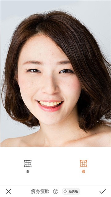 4、点击下方的编辑菜单选项,我这里以瘦脸功能为例进行演示,只需滑动屏幕就能调整脸部轮廓了。