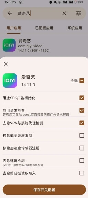 5、在AdClose模块的应用列表里,找到对应的应用并开启Hook功能。