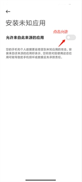 2、以小米手机为例,不同机型的设置操作大致相近,只需点击允许来自此来源的应用即可。