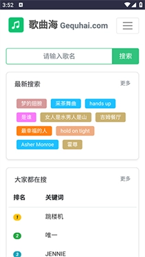 歌曲海是一款资源丰富的音乐软件,用户可以在这里免费听各种音乐,多种类型任你选择,一键搜索歌手、歌曲名即可找到想听的歌曲,随时随地享受音乐盛宴。