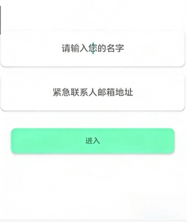 1、安装完成后无需进行注册或登录操作,直接填写本人姓名与紧急联系人邮箱,即可完成基础设置环节。