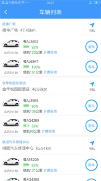 3、返回租车页面,点击立即用车,自动筛选距离最近的车辆。 或者点击右下角,进入选车页面,选择自己需要的车型。