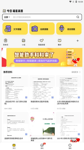 3、1W+教材和海量网课,10亿文档,大学四年需要的题库、资料库全部满足,是大学生搜题找答案查资料的学习神器!