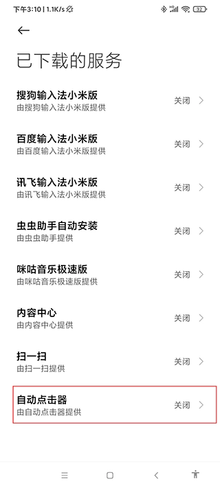 找到“自动点击器”,也是默认关闭的,需要开启;
