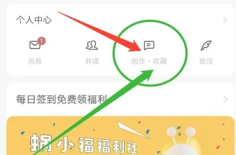 进入“我的”页面,点击个人中心里的“创作·收益”图标。