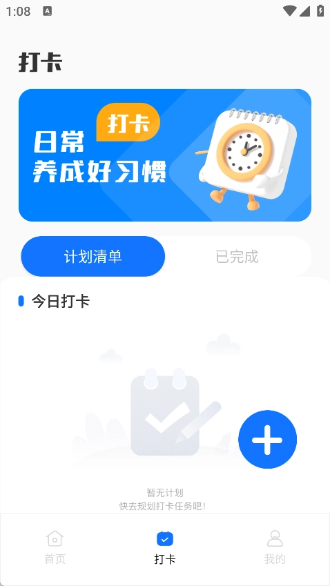在打卡页面中,你可以添加各种不同类型的计划,还能实时高效地完成快速打卡操作。