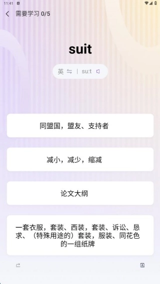 点击“开始学习”功能,就能查看今日需记忆的单词,其对应的词义也会同步呈现。
