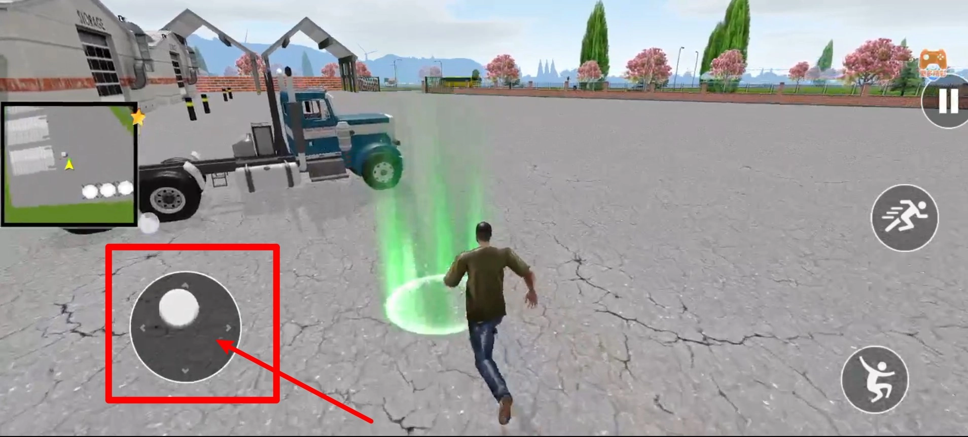 3.角色下车移动:点击左下角虚拟摇杆可控制角色自由移动,靠近绿色光圈区域可触发交互事件或进行上下车操作。