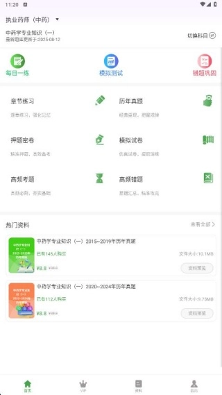 2、首页整合了每日一练、模拟测试、错题巩固等功能,汇聚多元题库资源,助力大家高效刷题。