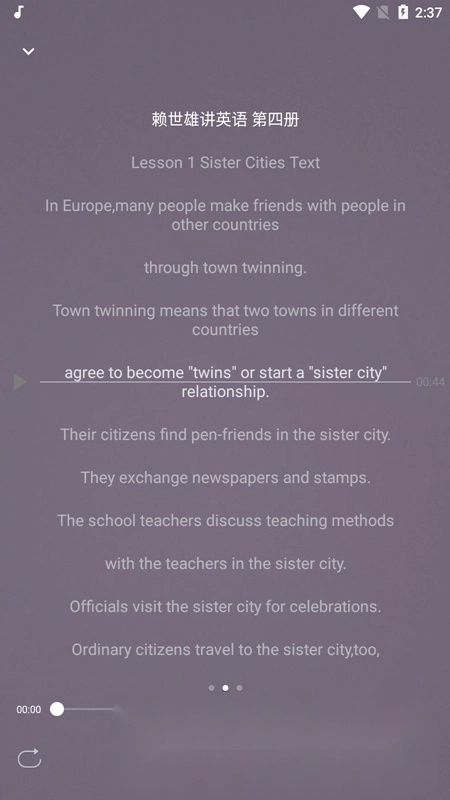 2.英语听力功能支持课文、翻译与单词同步显示,听力播放时可对照课文学习;