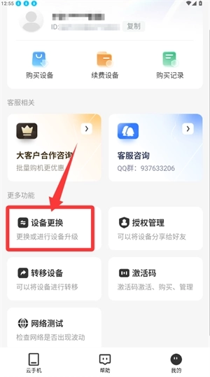 2、进入个人页面后,找到并点击设备更换选项,随后进入更换操作界面。