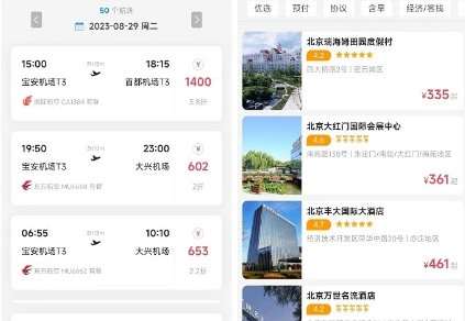 1.机票预订服务:可对接多家航空公司,实现机票的查询与预订操作,同时具备价格对比、实时航班动态查询以及退票、改签等功能。