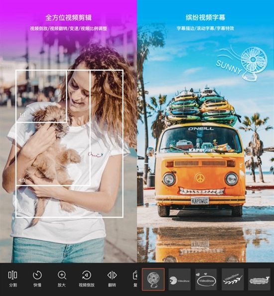 视频编辑涵盖视频片段的编辑、剪裁、分割、快放、慢放、旋转缩放、倒放、压缩、复制等功能,还支持横屏大片、竖屏手机、方块小视频等不同比例的视频制作,提供多种参数调节选项,能让你轻松打造出丰富的视频特效,各类实用工具一应俱全。