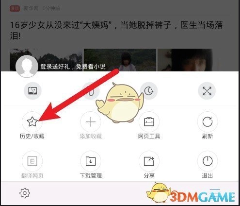 点击菜单里的“收藏/历史”按钮,就能进入“收藏/历史”页面。