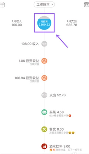 5、完成预算设置后,您的预算相关情况会在账单界面呈现预算剩余信息。