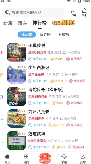 1、安装完成软件后,就能进入其中体验各类福利游戏,还有gm科技刷充等功能。
