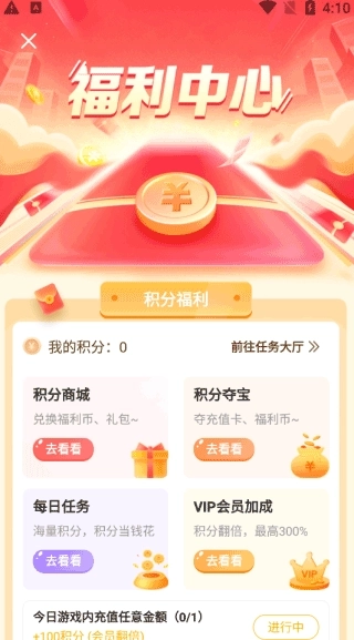 2、还能进入福利中心领取专属你的活动任务和大将。