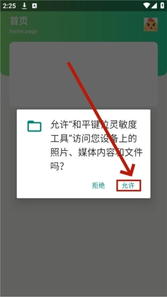 1、安装并打开和平键位灵敏度工具,点击允许