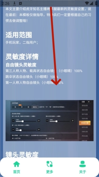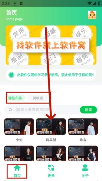 2、进入后在首页直接点击你所需的键位布局或灵敏度,点击即可查看