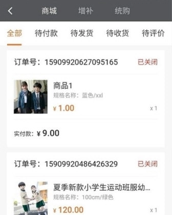 4、进入首页,完成校服增订、在线支付。