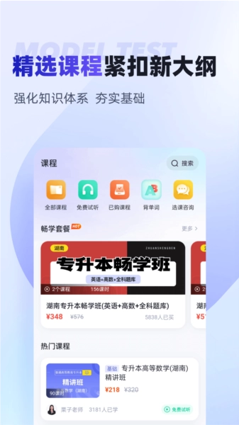 软件还汇集了一线名师研发的精品视频课程,覆盖政治、大学英语、高等数学等多个科目,以及面试与专业考试等关键领域。通过精准对标考试要求,考生可在任何时间、任何地点,远程享受系统化、个性化的视频学习资源,大幅提升备考效果。同时,平台提供全面的资讯与在线答疑服务,深度解读最新政策变化,邀请行业专家实时解惑,为考生扫清升学路上的疑虑与障碍。